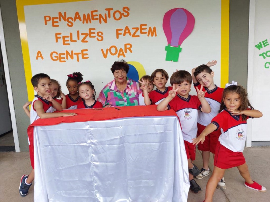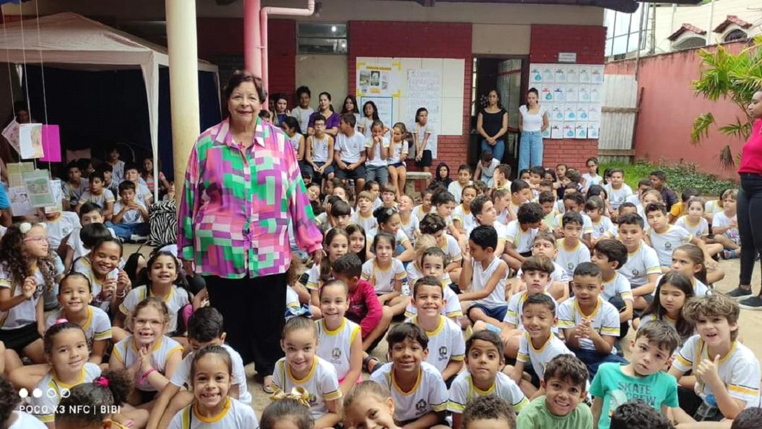 A acolhida foi tão calorosa e simpática que chegou a me comover. A Escola toda enfeitada com cartazes alusivos a mim e às minhas obras. Os alunos sorridentes adquiriram meu livro. Contei história, cantei e, com todos juntos, inventei alegria.