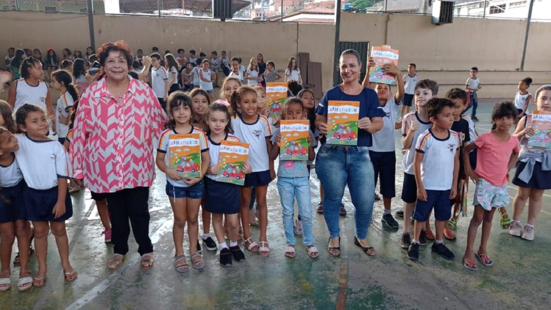 Cantei com os alunos e falei sobre a importância da literatura na vida de todos. As crianças pegavam o livro com tanto encantamento que vislumbrei o bem que a leitura fará na caminhada deles.