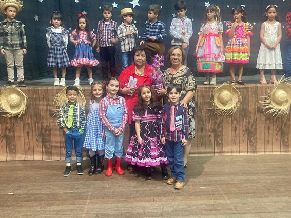 Agradeço a Eci, diretora do estabelecimento, pelo carinho de promover um momento tão bonito usando meus poemas. Agradeço, também a forma atenciosa com que sempre me recebe nessa escola que eu guardo no fundo de meus sentimentos mais nobres. Meu muito obrigada vai buscar agora a nossa querida Angélica, que é uma verdadeira mestra que sabe apresentar com muito talento as reuniões festivas da escola. Também meus parabéns vai para as professoras que souberam tão bem ensaiar e deixar as turmas prontas para aquele momento de encanto. Para cada aluno, deixo o meu carinho e um beijinho bem doce.
