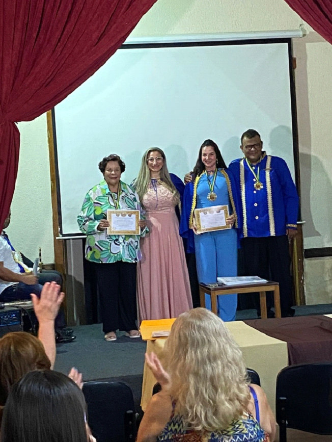 Houve entrega de diplomas e medalhas a muitas figuras da literatura e das artes. De Caratinga muitos receberam moções e medalhas: Lígia Maria dos Reis Matos, Eugênio Maria Gomes, Professor José Aylton de Mattos, Rejane Nascimento, José Geraldo Batista, Verônica Moreira, Joaninha Fernandes, vereador Johny Claudy, a vereadora Giuliane Quintino, o cartunista EDRA e eu que recebi os diplomas de Embaixadora da Paz, Destaque Cultura e medalha das Letras e Ciências que é uma homenagem a Dom Pedro II.