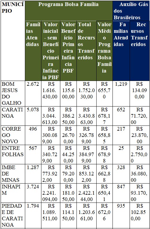 O município de Caratinga teve 675 famílias beneficiadas pelo Programa Auxílio Gás dos Brasileiros, totalizando um investimento de R$ 75.600,00.