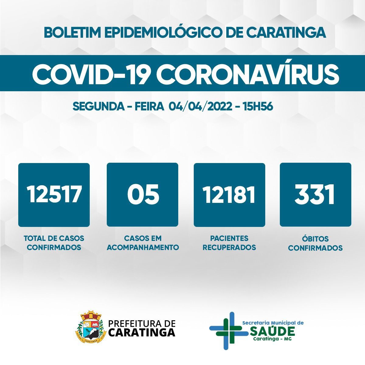 No dia 1º de abril, o acumulado era de 12.517 casos confirmados, dos quais 11 seguiam em acompanhamento e 12.175 pacientes já eram considerados recuperados para a doença. Já na segunda-feira (4), em que o boletim é atualizado considerando ainda os resultados do final de semana, o município reduziu o número de pacientes ativos para cinco, aumentando os recuperados para 12.181.