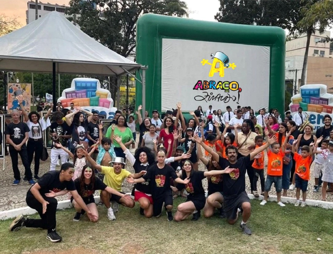 – Todos os artistas reunidos para dar um abraço em torno do boneco do Menino Maluquinho, simbolizando o amor e a gratidão ao legado e à pessoa de Ziraldo