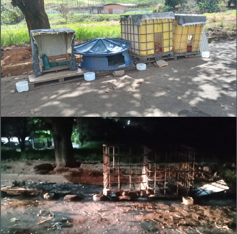 CARATINGA- Um relato emocionado de uma protetora de animais de Caratinga. O local que antes era um abrigo para oito cães abandonados foi alvo de vandalismo, no Loteamento Alvorada. As chamas consumiram as casinhas que foram cuidadosamente feitas pelo grupo de protetoras.