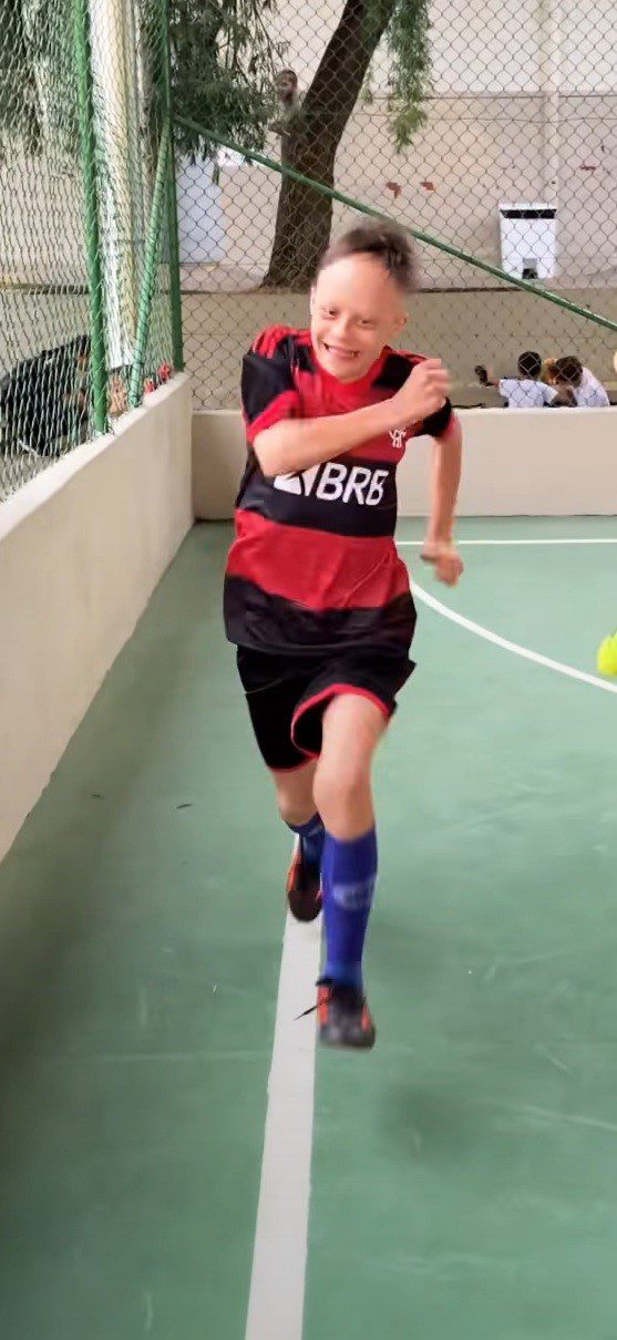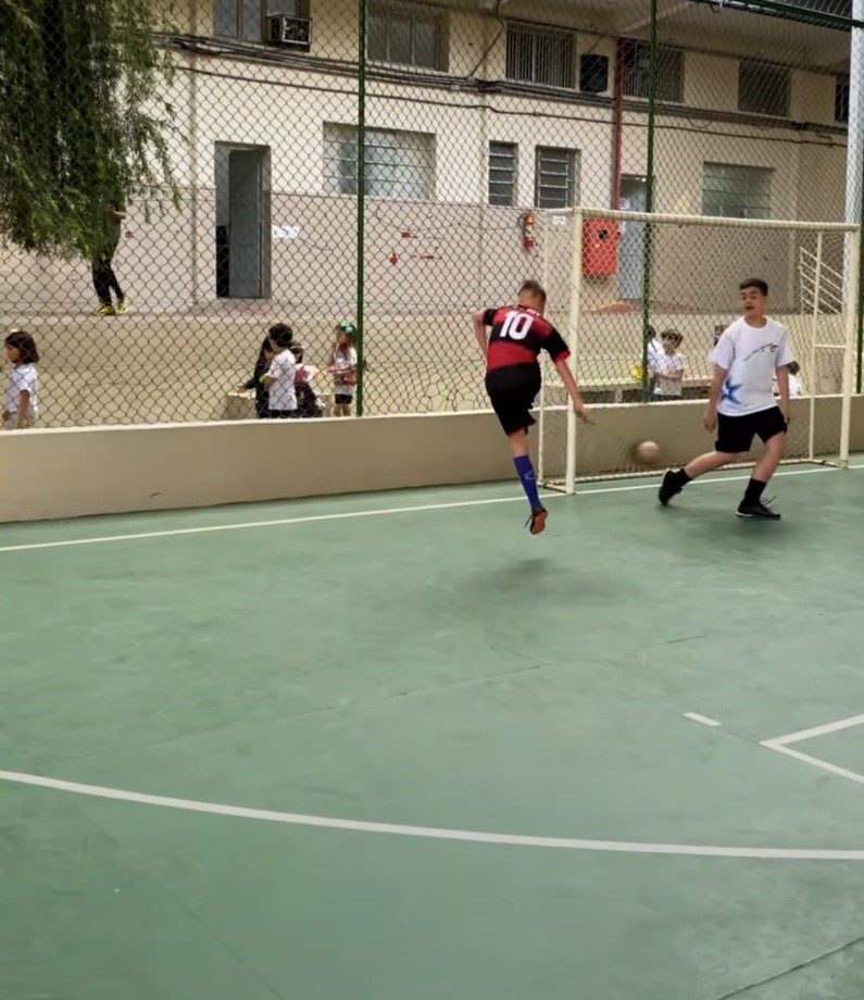 Trata-se de uma ação de empatia e inclusão em que um dos alunos, Antônio José, criança que tem síndrome de Down, está participando de uma aula de futsal e faz um gol. Ele e os colegas vibram pela sua conquista em quadra, o que representa os conceitos de inclusão trabalhados no cotidiano da escola.