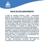 A Apac também se manifestou sobre o assunto através de nota enviada à imprensa, dizendo que “solicitou à FBAC (Fraternidade Brasileira de Assistência aos Condenados) que realizasse visita de campo objetivando apurar as ocorrências de fugas recentes. Durante a referida visita foi identificada a suspeita de possíveis irregularidades administrativas na entidade, não relacionadas a fuga, que de pronto foram comunicadas à Vara de Execuções Penais da comarca, tem o juiz de direito titular determinado a realização de auditoria para uma apuração mais técnica acerca das supostas irregularidades. Como garantia de transparência aos trabalhos da auditoria, o presidente e a tesoureira, membros da diretoria executiva da Apac, foram afastados de suas funções por um período de seis meses, ficando à frente da entidade, o seu vice-presidente, garantindo assim a continuidade dos atendimentos aos recuperandos, conforme previsto em lei.
