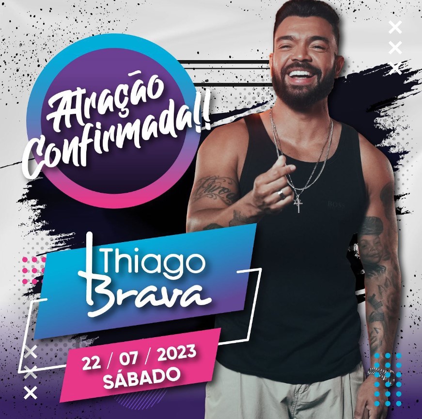 Com sua energia contagiante e sucessos que conquistaram o país, THIAGO BRAVA promete transformar o dia 22 de julho de 2023 em uma festa inesquecível. Prepare-se para cantar, dançar e se emocionar com seus maiores hits e performances incríveis.