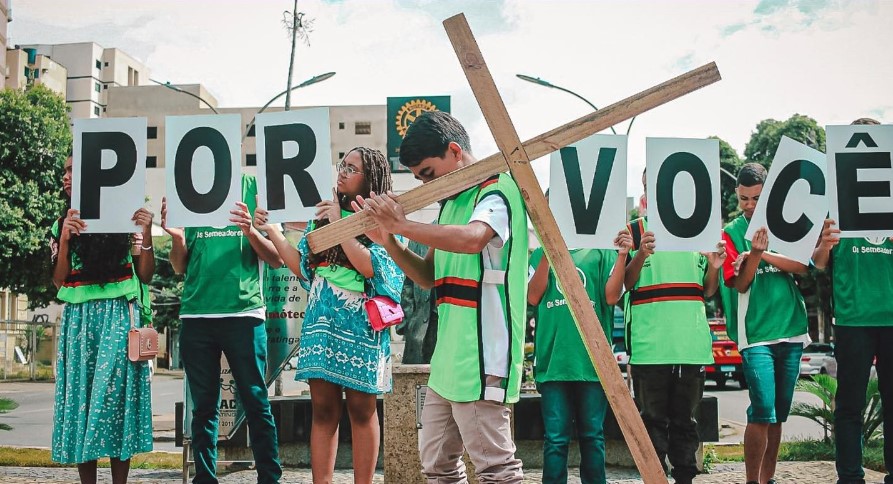 Após essas ações, o grupo se reuniu no calçadão onde aconteceu momentos de louvores, orações e pregação da palavra de Deus.
