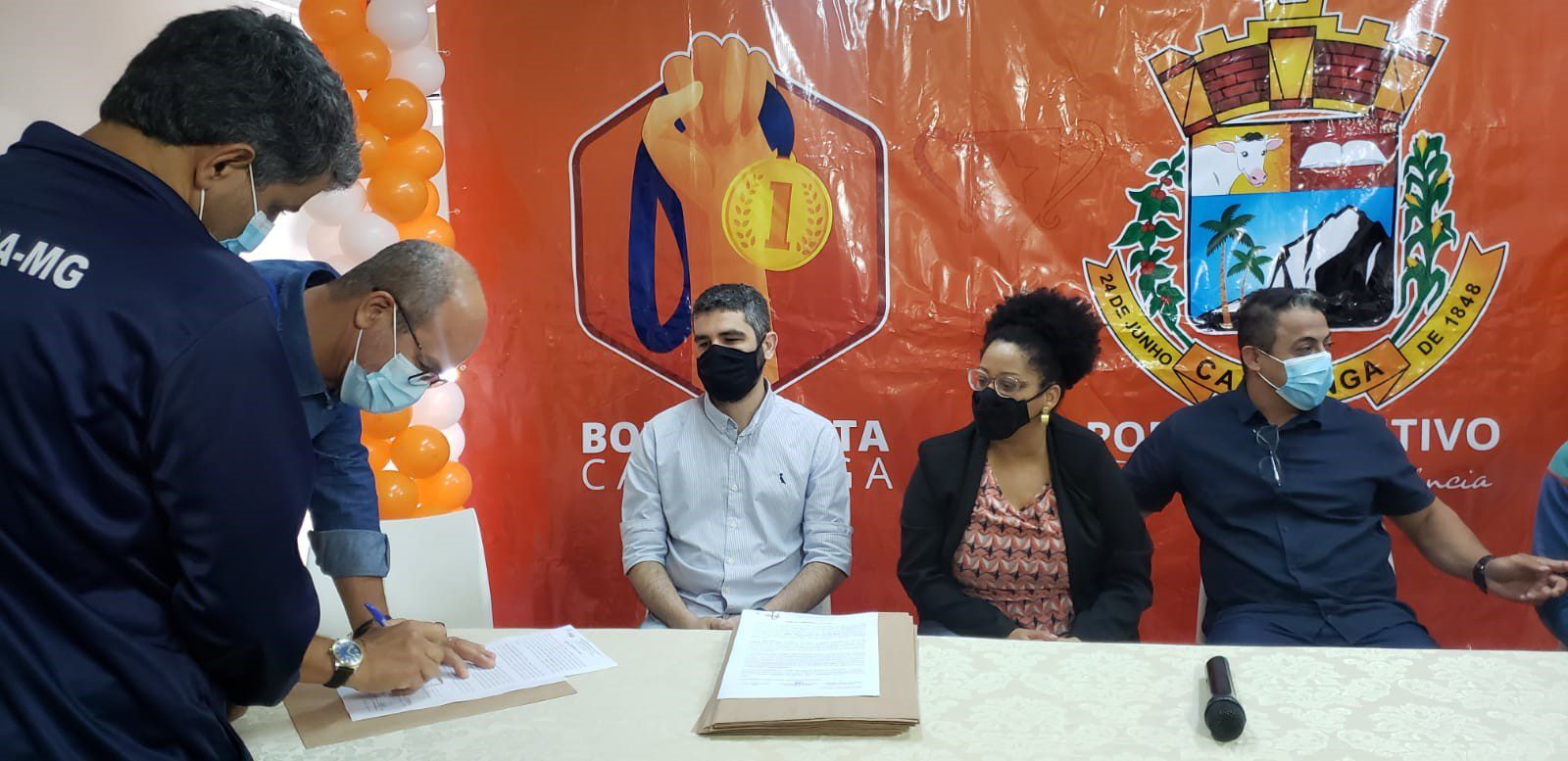 CARATINGA- A solenidade de assinatura do termo de compromisso do Programa Bolsa Atleta foi realizada na manhã desta terça-feira (10). Os representantes do esporte em Caratinga, selecionados em edital, foram recepcionados pelo prefeito Welington Moreira.
