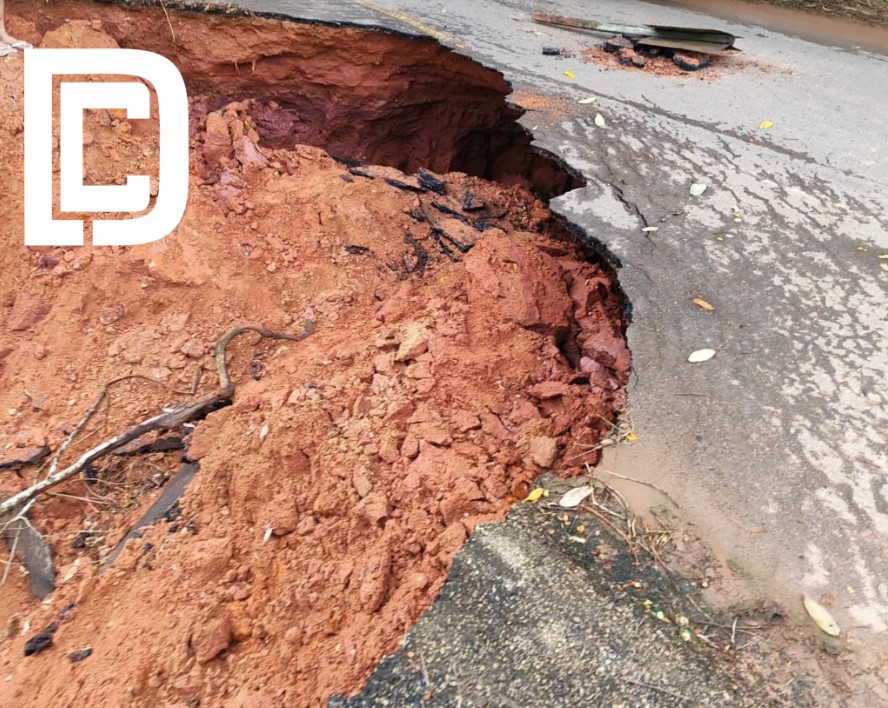 Devido às fortes chuvas que assolaram a região na madrugada desse sábado(23), parte da pista de rolamento da Rodovia MG- 425 cedeu na altura do km 67.