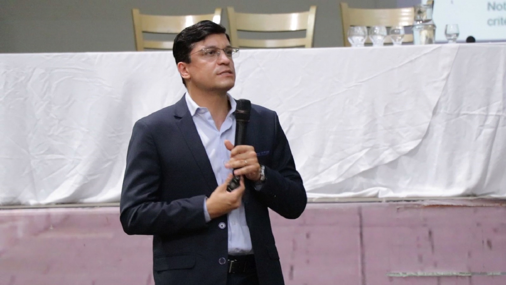 O médico Marco Túlio destacou a felicidade em poder falar para alunos da graduação, independente do curso, já que hoje há um grande problema no Brasil que é: “formar os profissionais para a situação de um processo de transição demográfica de envelhecimento extremamente acelerado”.