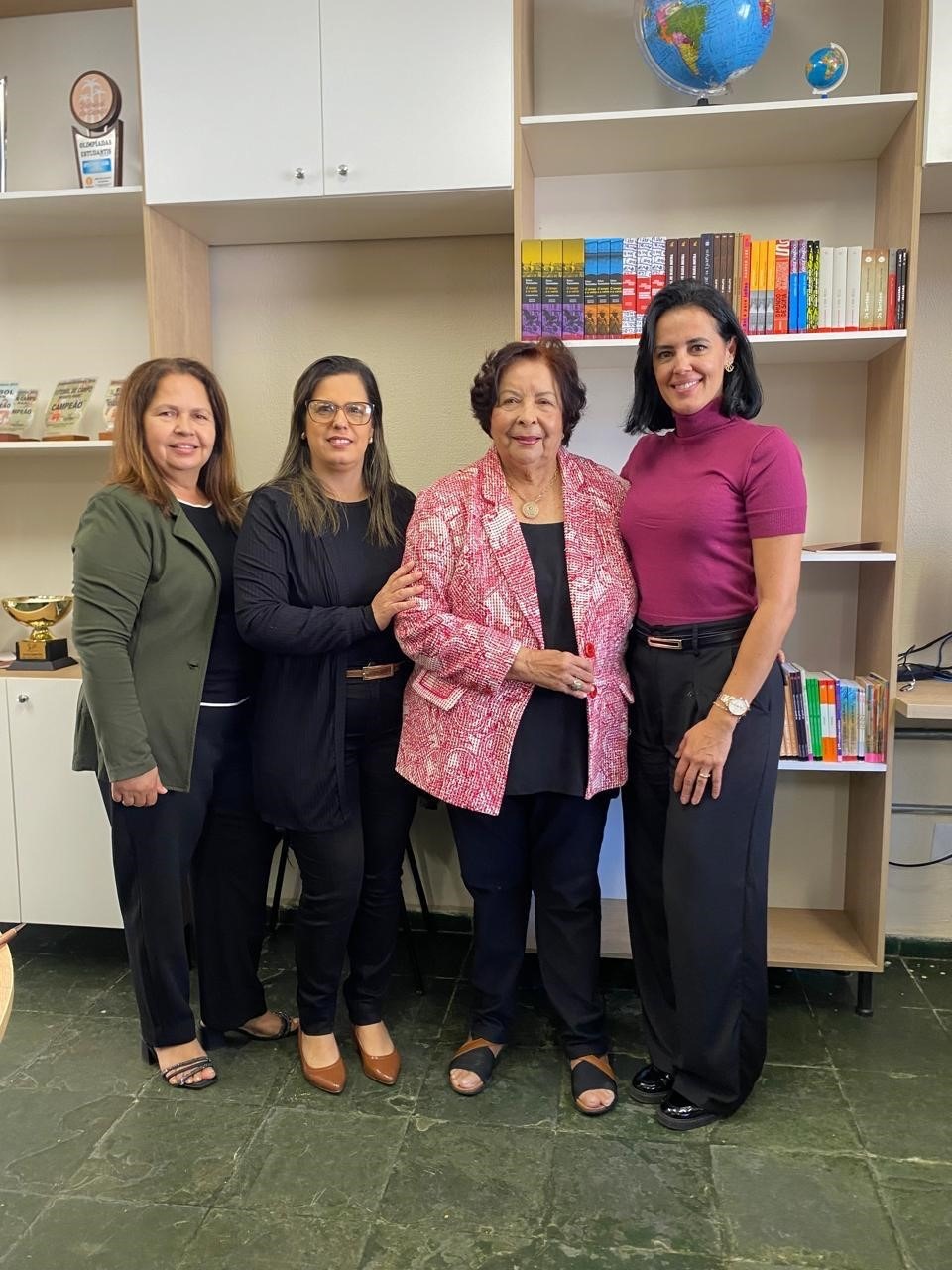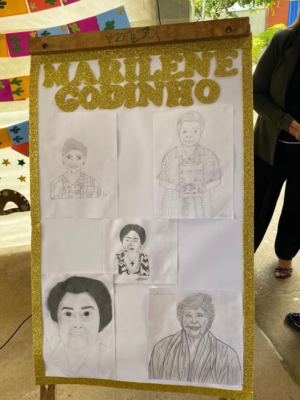 Em seguida, a escola realizou a inauguração de sua nova Biblioteca. O espaço, amplo e bem planejado, foi equipado com mesas e cadeiras dispostas de forma a garantir conforto e integração. Marilene Godinho declamou poemas para os alunos e professoras presentes, respondendo a perguntas sobre sua trajetória literária e experiências de vida. Ela também apresentou vários de seus títulos, encantando o público com suas histórias e reflexões.