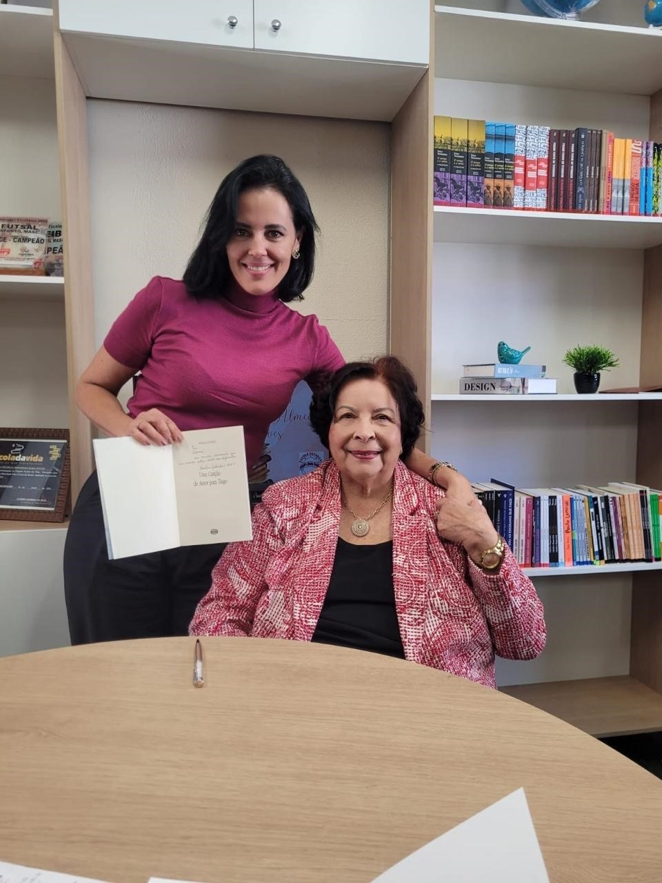 A visita foi coroada com uma sessão de autógrafos, onde a escritora deixou dedicatórias afetuosas para os alunos e professoras, registrando mensagens carregadas de carinho e incentivo à leitura. Logo após, foi servido um lanche caprichado, com bolos recheados e quitutes que conquistaram todos os presentes.