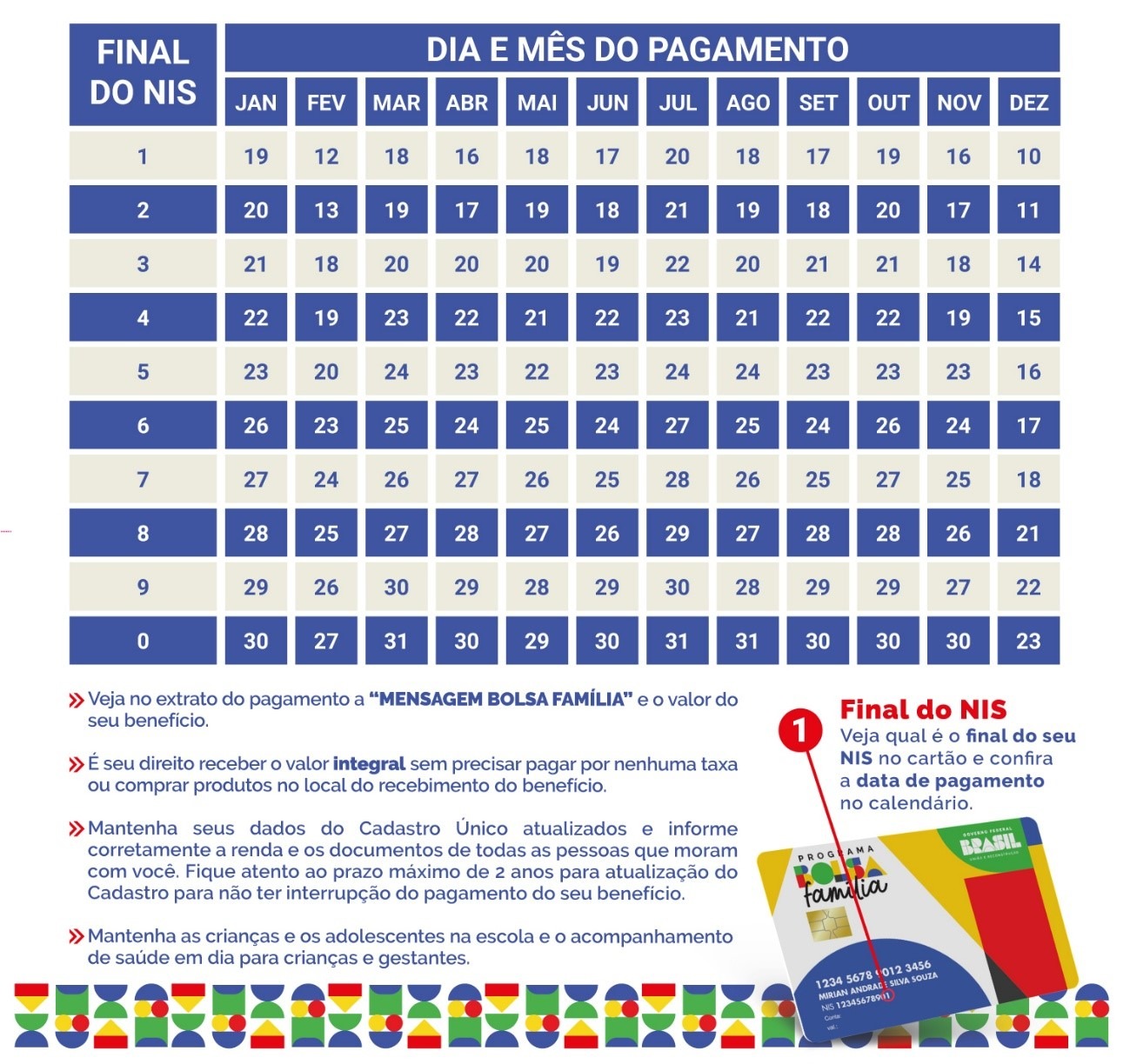 O pagamento do Bolsa Família ocorre de forma escalonada, conforme o último dígito do NIS, e segue até o dia 30 de janeiro, quando recebem os beneficiários com NIS final zero.