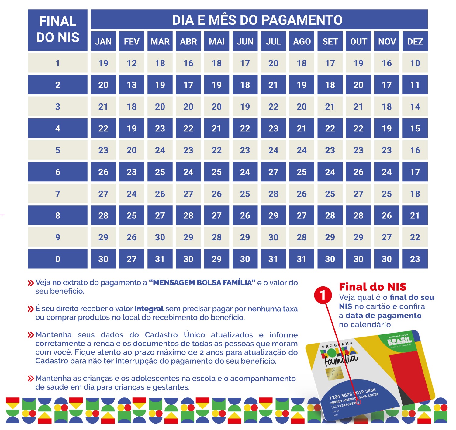 O pagamento do Bolsa Família ocorre de forma escalonada, conforme o último dígito do NIS, e segue até o dia 30 de janeiro, quando recebem os beneficiários com NIS final zero.
