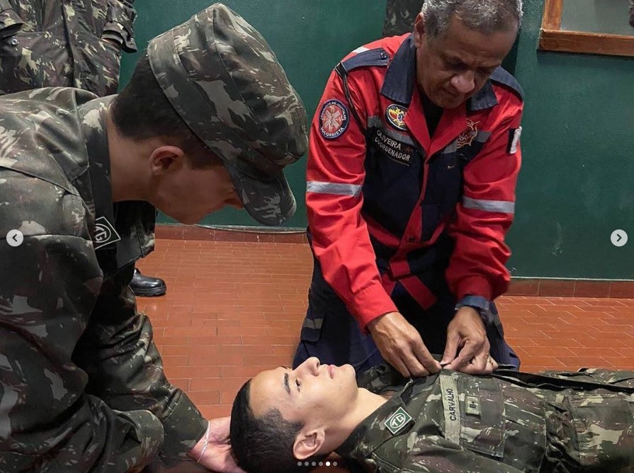 Integrantes do Grupamento de Resgate Ubaporanga através do Coordenador Operacional Oliveira estiveram no Tiro de Guerra em Caratinga para a finalização do ciclo de palestras sobre Noções Básicas de Primeiros Socorros.