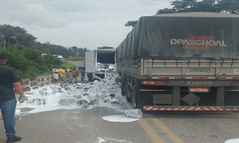 A BR-381 segue interditada, em ambos sentidos, devido ao derramamento de carga de tinta por toda a pista no Km 332, em Nova Era, Região da Grande BH. Devido ao incidente, que aconteceu por volta das 10h30, a rodovia está parada tanto no sentido Vitória quanto no sentido Belo Horizonte. As informações são da Polícia Rodoviária Federal, que está no local. Os militares explicam que o caminhão derramou a tinta exatamente em cima de uma ponte, que não tem acostamento. Assim, impossibilitando desvios no trânsito.