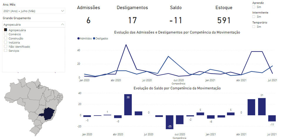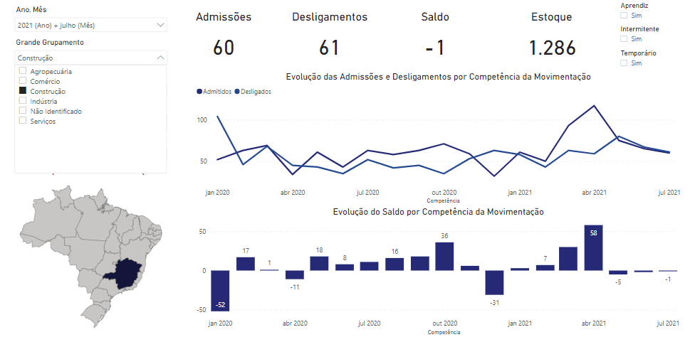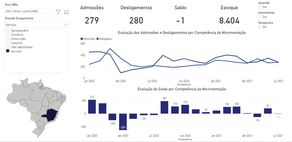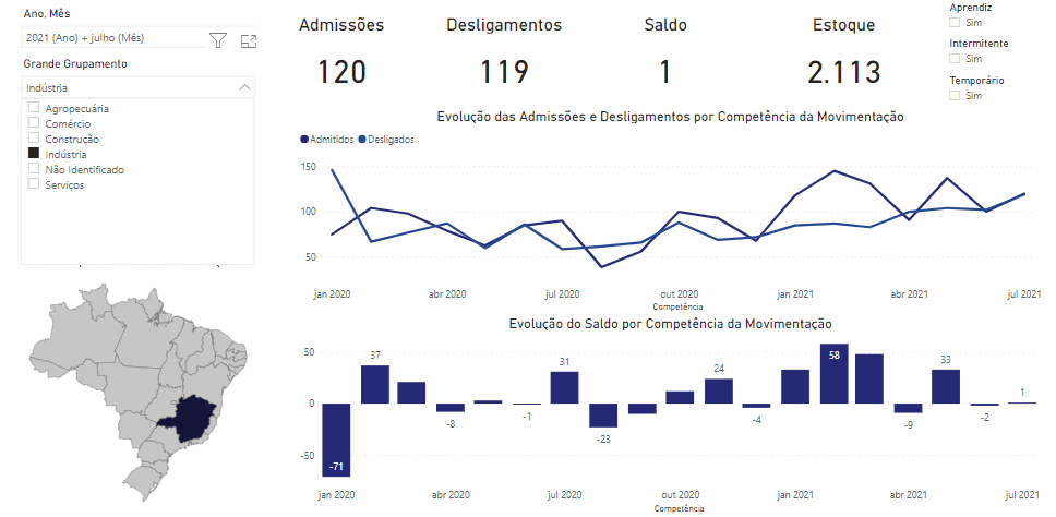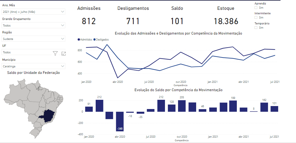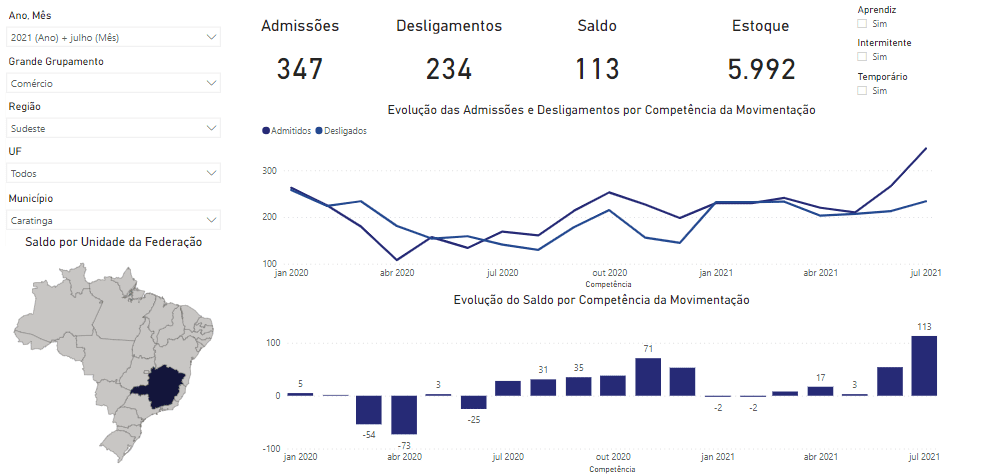 Os dados do Caged para o mês de julho em Caratinga são os seguintes: