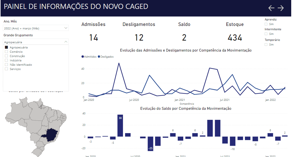 O saldo de março último foi resultado de 1.953.071 contratações menos 1.816.882 de demissões. O estoque de empregos formais, que é a quantidade total de vínculos celetistas ativos no país, encerrou março 41,2 milhões de empregados, variação de positiva de 0,33% em relação ao mês anterior. No acumulado do ano de 2022, foi registrado saldo de 615.173 empregos, decorrente de 5.820.897 admissões e de 5.205.724 desligamentos.