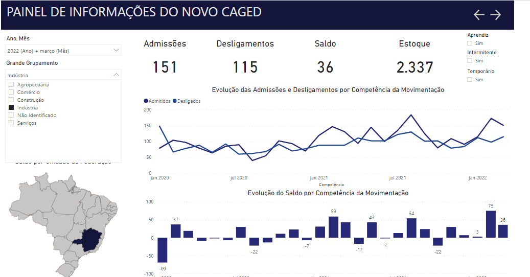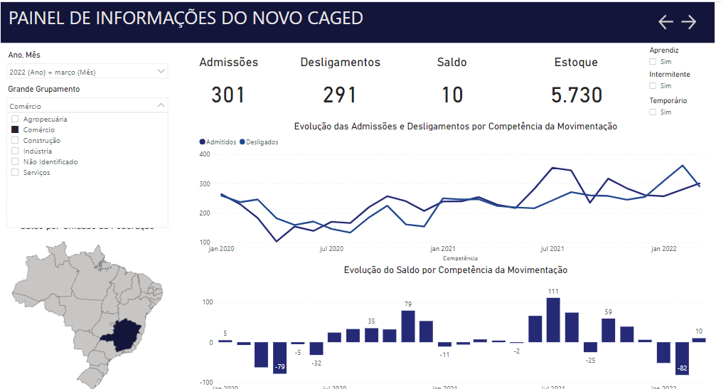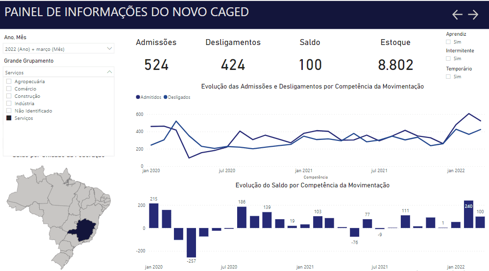 CARATINGA – O Brasil fechou o mês de março de 2022 com a criação de 136.189 empregos formais, segundo balanço do Cadastro Geral de Empregados e Desempregados (Novo Caged) apresentado nesta quinta-feira (28) pelo Ministério do Trabalho e Previdência. O número é menor do que os 153.431 empregos novos gerados em março do ano passado. Caratinga também registrou saldo positivo e todos os setores apresentaram números satisfatórios. Em março o município apresentou 1.093 admissões e 905 demissões, saldo de 188 empregos com carteira assinada.