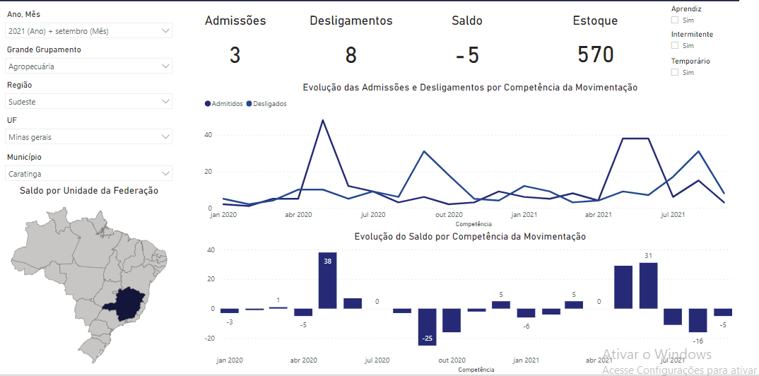 CARATINGA – O Brasil gerou 313.902 postos de trabalho em setembro deste ano, resultado de 1.780.161 admissões e de 1.466.259 desligamentos de empregos com carteira assinada. No acumulado de 2021, o saldo positivo é de 2.512.937 novos trabalhadores no mercado formal. Os dados são do Ministério do Trabalho e Previdência, que divulgou na terça-feira (26) as Estatísticas Mensais do Emprego Formal, o Novo Caged. Já Caratinga teve saldo de 123 empregos formais, apresentando 840 admissões e 717 desligamentos.