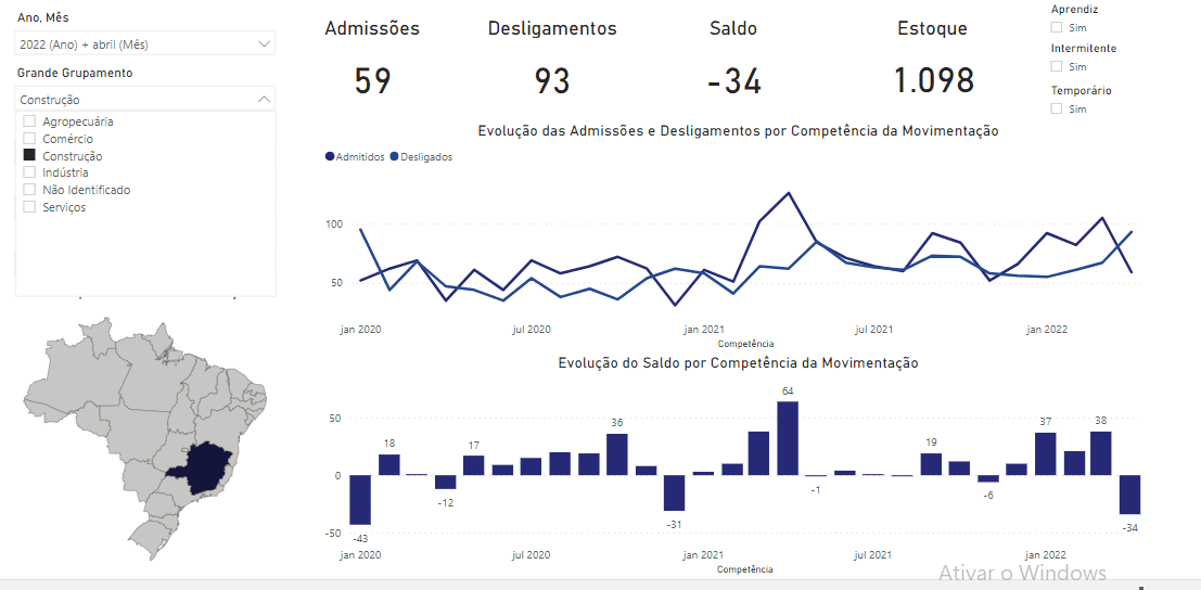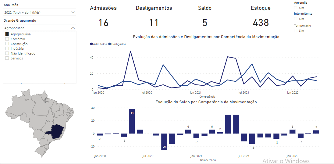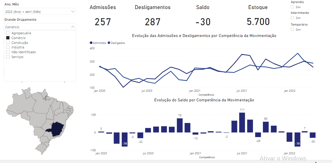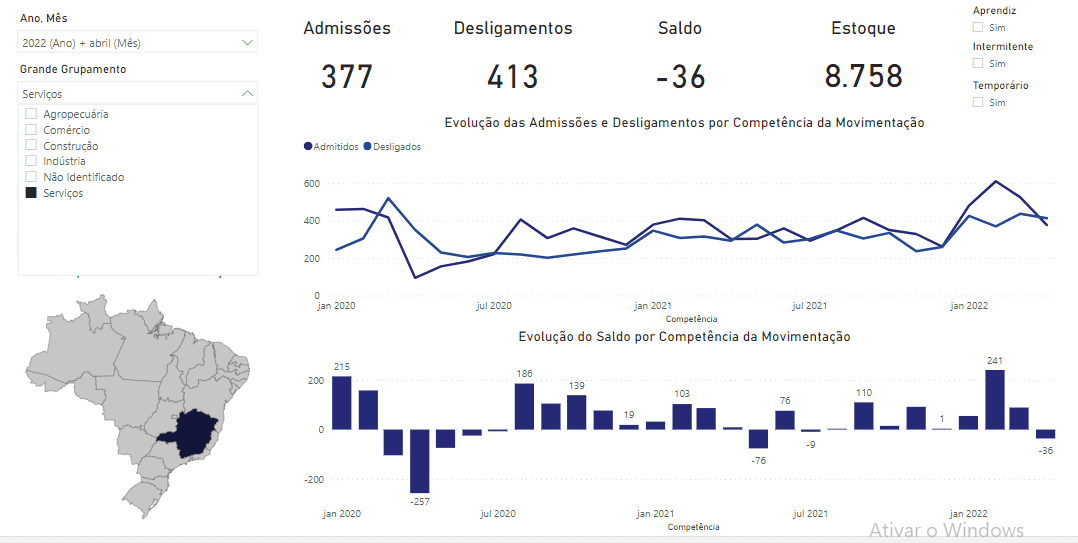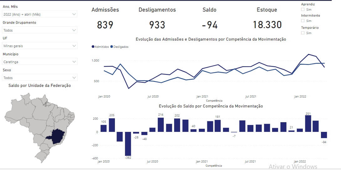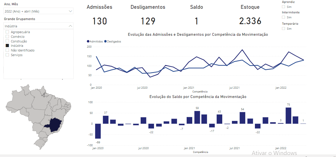 De acordo com o Novo Caged, no acumulado de 2022 o saldo está em 770.593 empregos, número que decorre de um total de 7.715.322 admissões e de 6.944.729 desligamentos. Este saldo é 3,6% menor do que o registrado no mesmo período do ano passado.