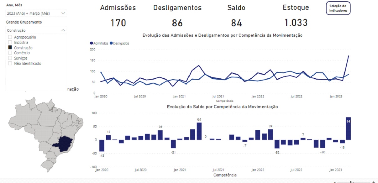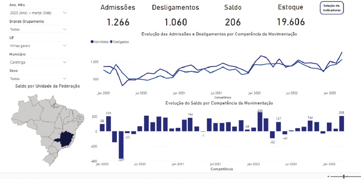 De acordo com o Caged, Caratinga registrou em março 1.266 admissões e 1.060 desligamentos, saldo de 206 postos de trabalho. Esses números são creditados, principalmente, as movimentações nos setores da construção civil e serviços.