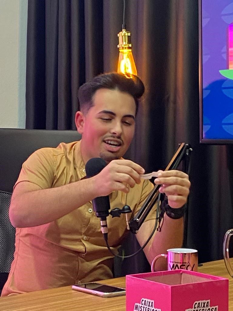 Durante o programa teve muita diversão, Caíque não escapou das perguntas da “Caixa Misteriosa”, onde alguns segredos de sua vida pessoal foram revelados. É claro que Caíque Ferreira cantou algumas músicas, dentre elas, “Áudio Falha”, que já teve 47 mil visualizações no YouTube.