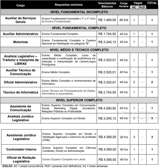 O edital completo, contendo a relação de cargos, vagas e suas especificações pode ser conferido no endereço eletrônico https://www.cmcaratinga.mg.gov.br/diario-eletronico