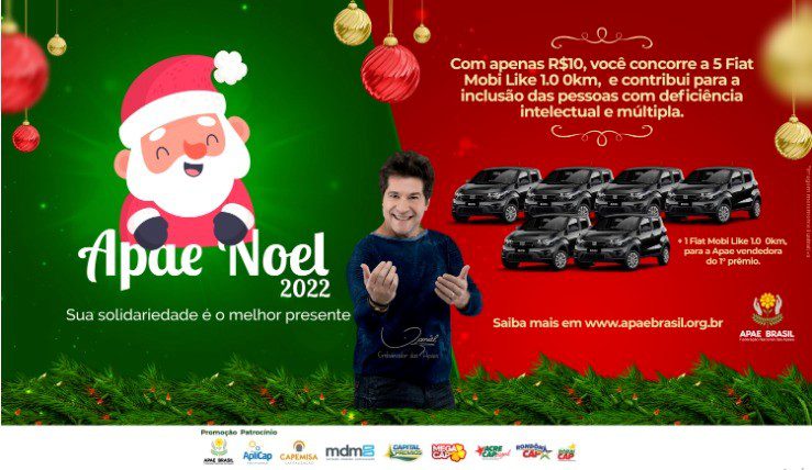 CARATINGA- A Apae Brasil em parceria com as Federações das Apaes de todo o país realiza mais uma edição da campanha natalina Apae Noel. Este ano a campanha terá como prêmios seis carros 0km, sendo cinco ganhadores e um veículo para uma das instituições apaeanas engajadas na ação.