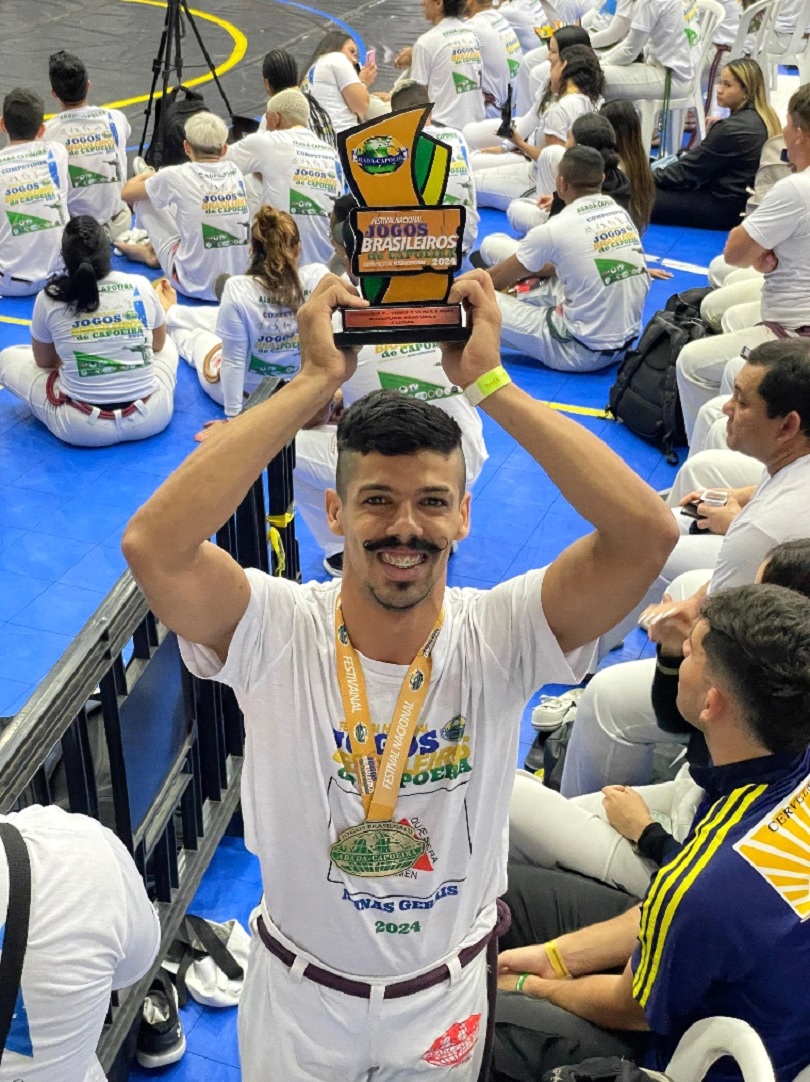 Derleon Lima Vieira, que pratica capoeira há 13 anos, destaca a satisfação da conquista do terceiro lugar na competição. “Esse é um evento de grandiosidade da nossa escola, os Jogos Brasileiros. O tema desse ano foi a identidade, que é um tema muito importante. Esse resultado se deu ao fruto de uma rifa que eu fiz com os meus amigos e apoiadores”.