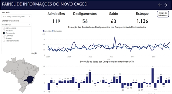 - O Comércio apresentou saldo negativo (-36), mas esse comportamento tende a se reverter entre novembro e dezembro, período em que normalmente há forte aumento nas contratações temporárias para as festas de fim de ano.
