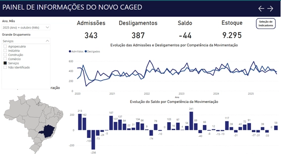 -Serviços: 343 admissões e 387 desligamentos (–44)