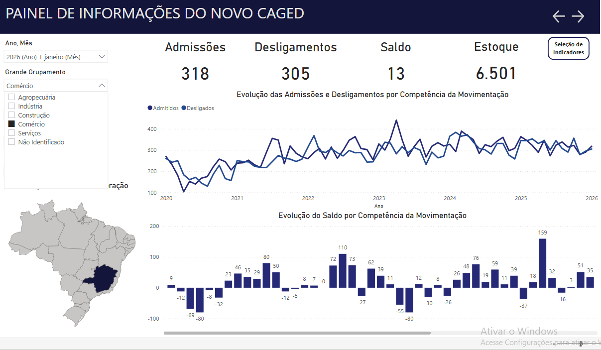 Enquanto Caratinga teve retração no emprego formal, Minas Gerais fechou janeiro com saldo positivo de 7.425 novos postos de trabalho com carteira assinada.