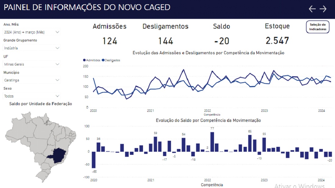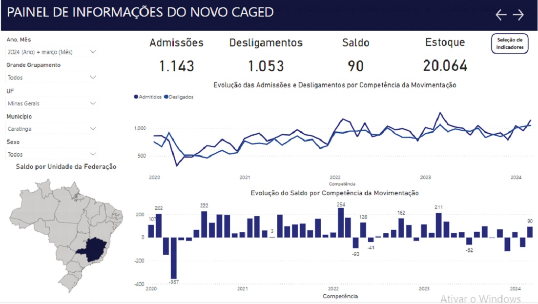 CARATINGA – O Brasil fechou o mês de março com saldo positivo de 244.315 empregos com carteira assinada. No acumulado do ano (janeiro/2024 a março/2024), o saldo foi positivo em 719.033 empregos, o que representa um aumento de 34% em relação aos três primeiros meses do ano passado. Já Caratinga registrou saldo de 90 empregos formais, tendo apontado 1.143 admissões e 1.053 demissões.