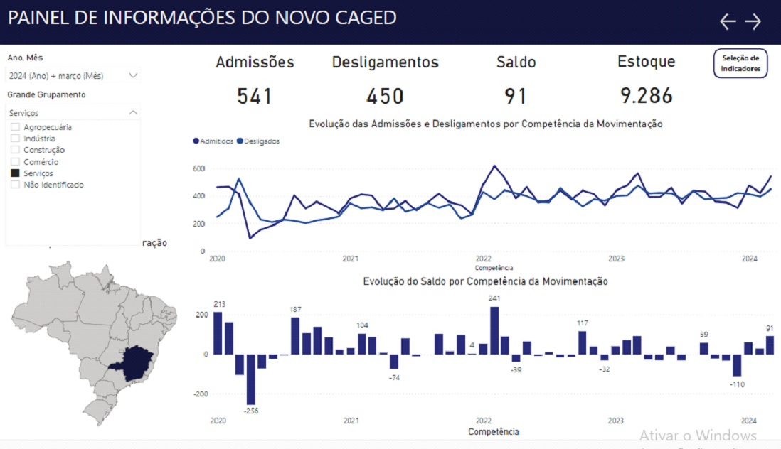 Conforme dados do Caged, Caratinga registrou em março de 2024, saldo de 90 empregos formais, tendo gerado 1.143 contratações e 1.053 dispensas. O destaque mais uma vez na geração de empregos foi o setor serviços.