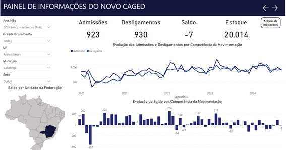 Conforme o Caged, Caratinga registrou saldo de menos 7 postos de trabalho em setembro, tendo apontado 923 admissões e 930 desligamentos. Os setores de agropecuária e construção tiveram números ruins, já a indústria, comércio e serviço alcançaram números positivos, embora baixos.