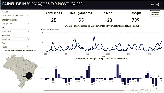 -Agropecuária: saldo negativo de 30 vagas (25 admissões e 55 desligamentos).