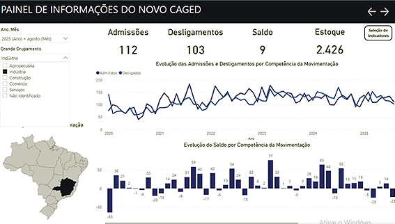 -Indústria: saldo de 9 vagas (112 contratações e 103 dispensas).
