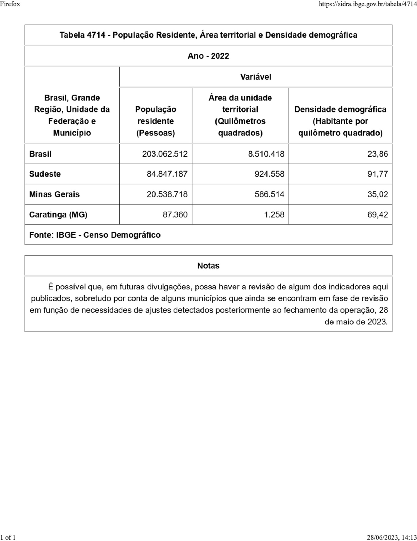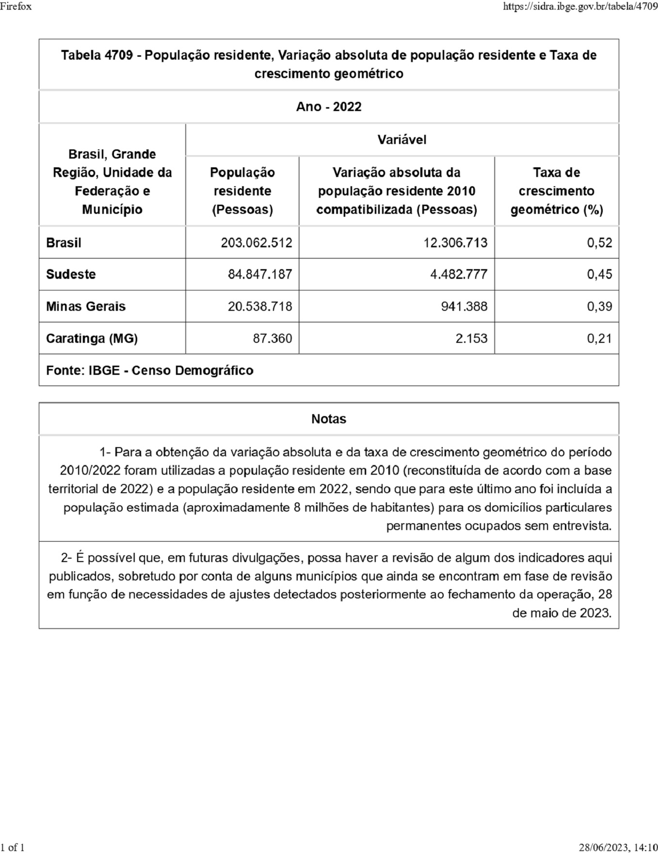 CARATINGA – A população de Caratinga chegou a 87.360 habitantes em 2022, com aumento de 2,53% frente ao censo demográfico anterior, realizado em 2010. Isso representa um acréscimo de 2.153 pessoas no período. Os dados são dos primeiros resultados do Censo Demográfico de 2022, divulgados nesta quarta-feira (28) pelo Instituto Brasileiro de Geografia e Estatística (IBGE).