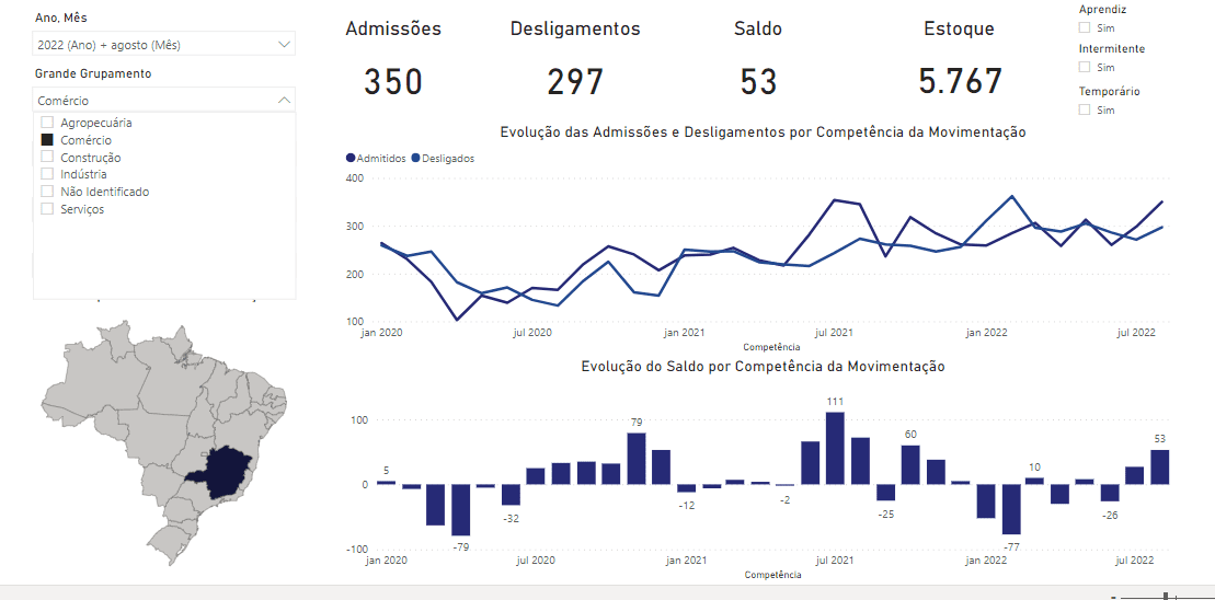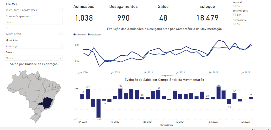 CARATINGA – O Brasil gerou 278.639 postos de trabalho em agosto deste ano, resultado de 2.051.800 admissões e de 1.773.161 desligamentos de empregos com carteira assinada. No acumulado de 2022, o saldo é de 1.853.298 novos trabalhadores no mercado formal. Os dados são do Ministério do Trabalho e Previdência, que divulgou na quinta-feira (29/9), em Brasília, as Estatísticas Mensais do Emprego Formal, o Novo Caged. Já Caratinga apresentou saldo de 48 postos de trabalho, tendo registrado no período 1.038 admissões e 990 demissões.