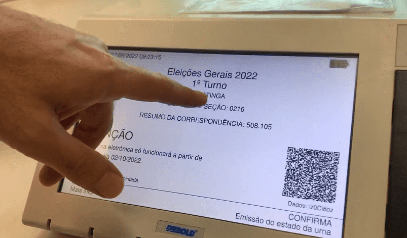 O chefe de cartório Arilson Oliveira explica o procedimento que foi realizado nesta segunda-feira (27). “Hoje estamos fazendo a conferência das 220 urnas que serão distribuídas para os nossos municípios para votação no dia 2 de outubro. Estamos desde às 8h, onde todas as urnas que receberam carga nos dias 17 e 18 de setembro foram lacradas e estamos agora ligando cada uma delas para fazer a conferência dos dados, para certificar de que a data está correta, bem como o horário, os dados de seção, município e o resumo da correspondência, que é um código gerado para cada urna no dia da carga”.