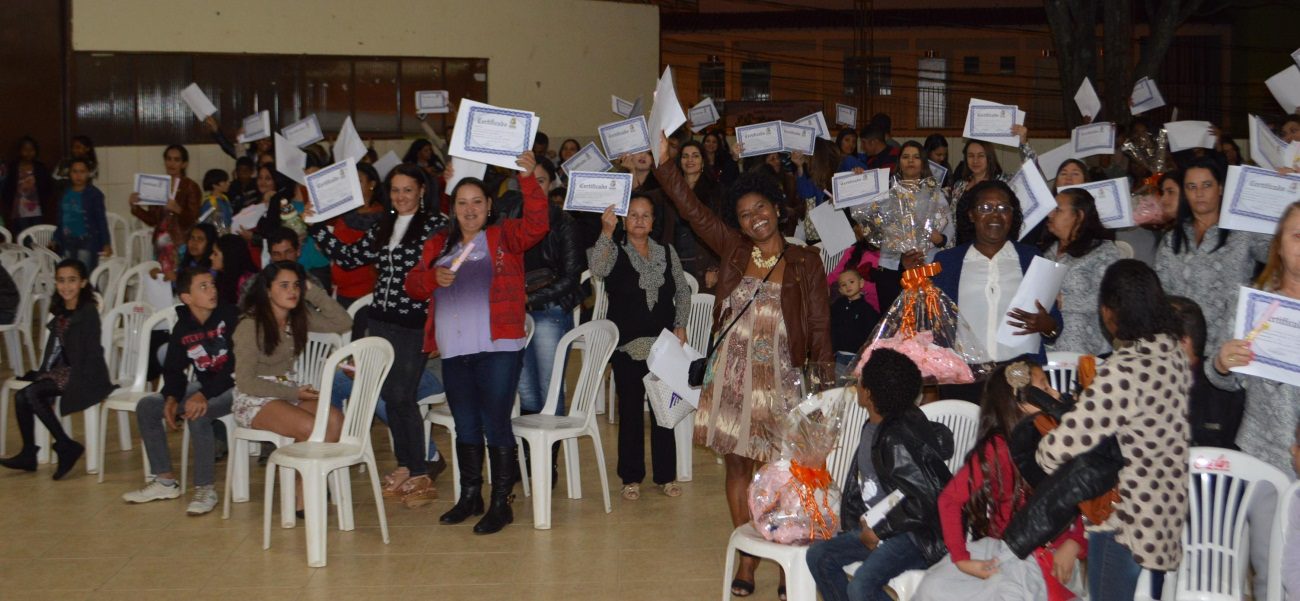 CARATINGA – A Casa da Mulher realizou mais uma formatura dos cursos profissionalizantes de corte e costura, pintura em tecido, biscuit, cabeleireiro, química em cabelo, manicure e depilação. A solenidade de entrega dos certificados foi realizada na noite de quinta-feira (25), na Funcime (Fundação Cidade dos Meninos), no bairro Santa Cruz.