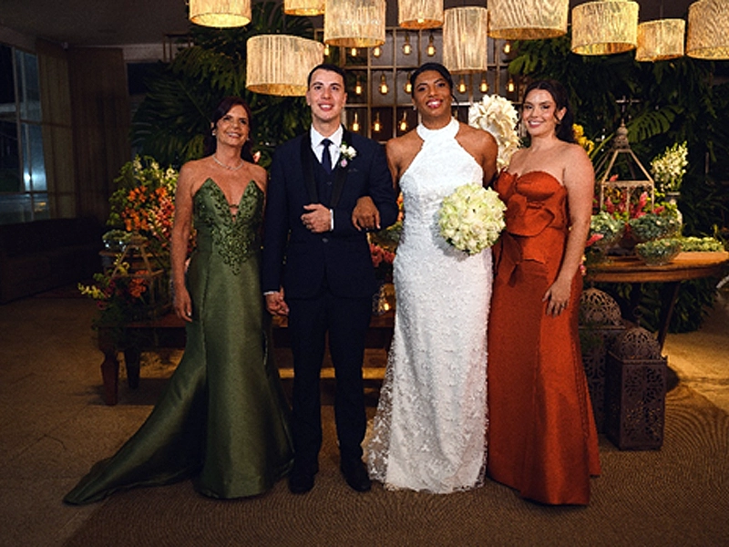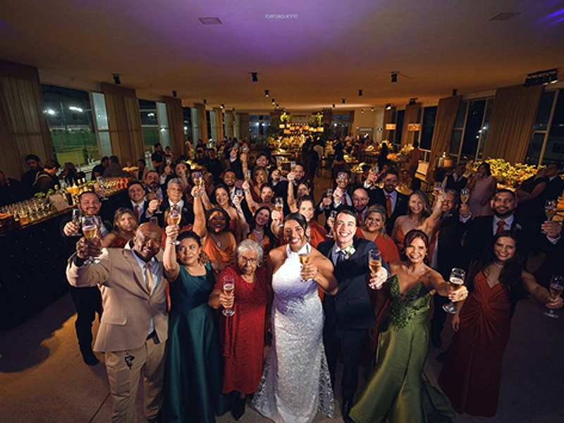 Após a cerimônia, os convidados foram recepcionados em grande estilo no Clube Caratinga, onde a noite foi marcada por alegria, música e muito amor.