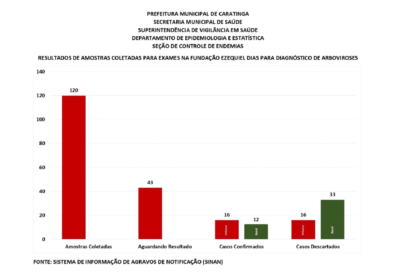 Os resultados de 120 amostras coletadas para exames na Fundação Ezequiel Dias para diagnóstico de arboviroses já apontou 16 casos confirmados e outros 16 descartados.