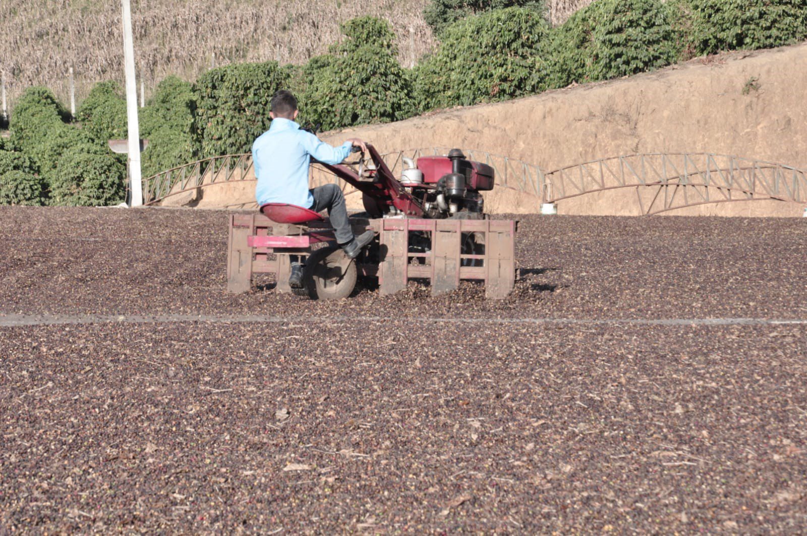 Depois do processo de lavagem os grãos seguem para o terreiro pavimentado de dez mil metros quadrados. Após a secagem os grãos passam por secadores rotativos. Nesse processo, o café segue para a máquina de pré-limpeza e classificação. Quando necessário, os grãos passam pela selecionadora eletrônica. O Centro conta, ainda, com um galpão coberto com telha galvanizada com 708 metros quadrados, para um curto período de armazenamento do café.
