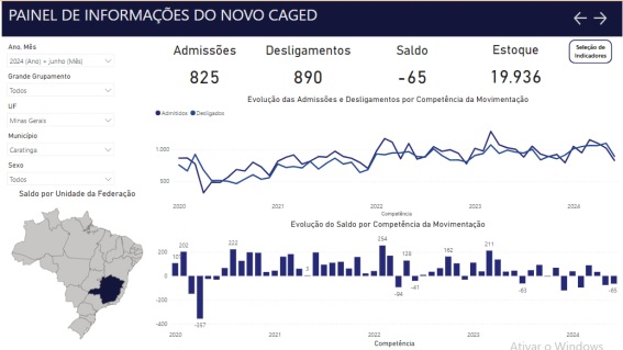 Conforme o Caged, Caratinga, em junho, registrou saldo negativo de 65 postos de trabalho, apontando 825 admissões e 890 demissões. Com exceção da agropecuária, todos os demais setores apresentaram números negativos.