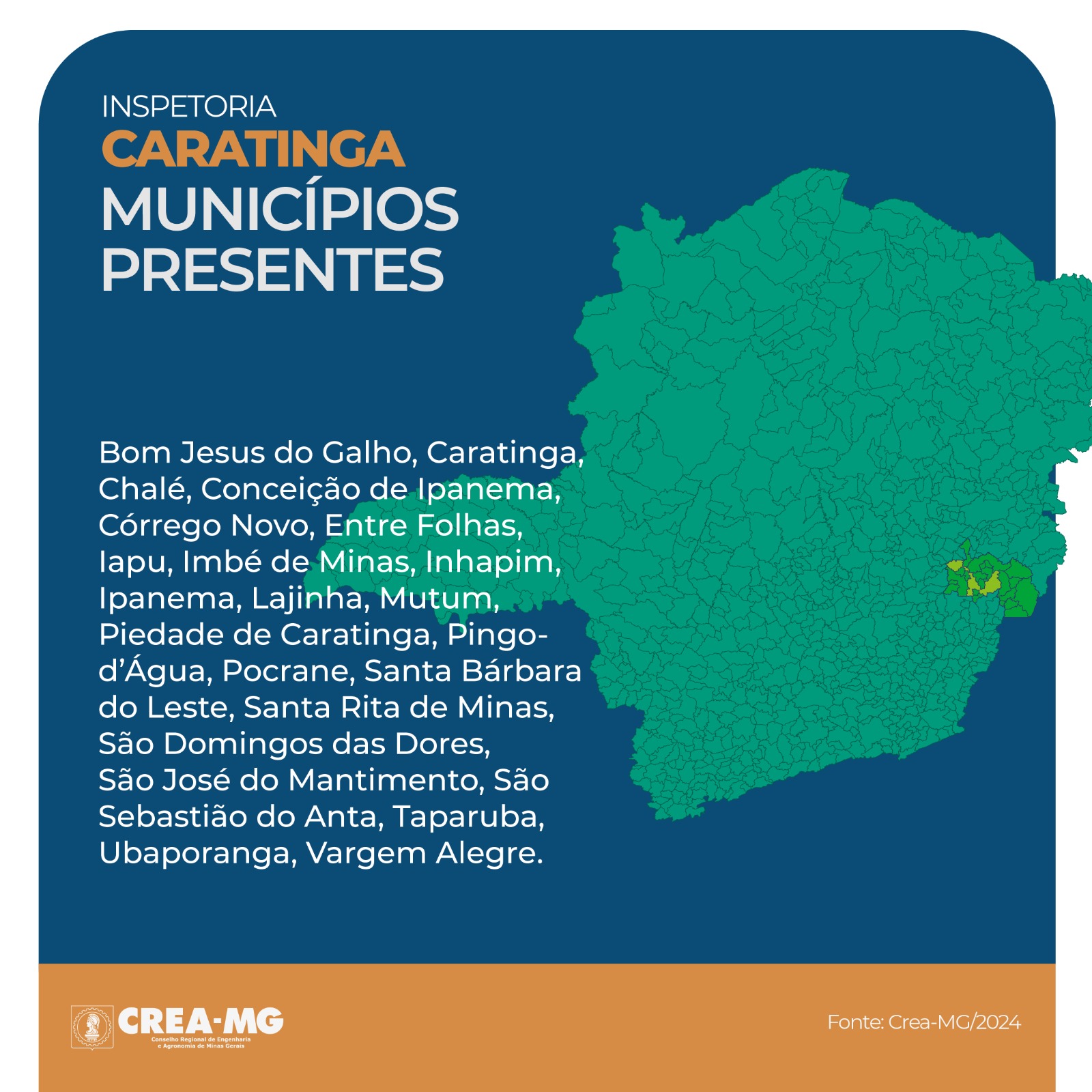 O Crea-MG verifica e fiscaliza o exercício e a atividade profissional da engenharia, da agronomia, da geologia, da geografia e da meteorologia, amparado pela Lei Federal 5.194/1966. A função do Conselho é defender a sociedade da prática ilegal das atividades técnicas, exigindo a participação declarada de profissionais legalmente habilitados, com conhecimento e atribuições específicas, na condução dos empreendimentos nestas áreas. Hoje, o Crea-MG possui mais de 150 mil profissionais registrados e quase 60 mil empresas com registro ativo.