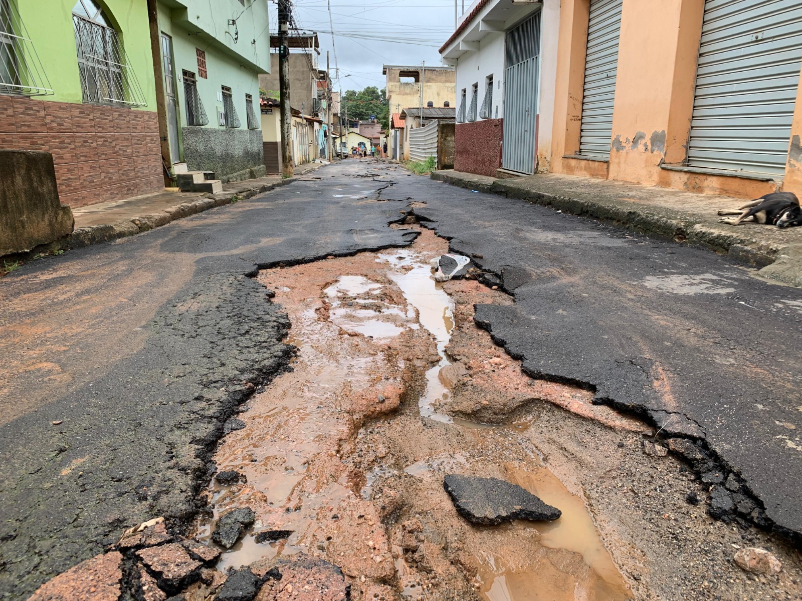 Outra localidade em que o asfalto cedeu foi a rua Zeferino Ferreira Neto, no Bairro Santa Zita, onde uma casa também foi alagada.