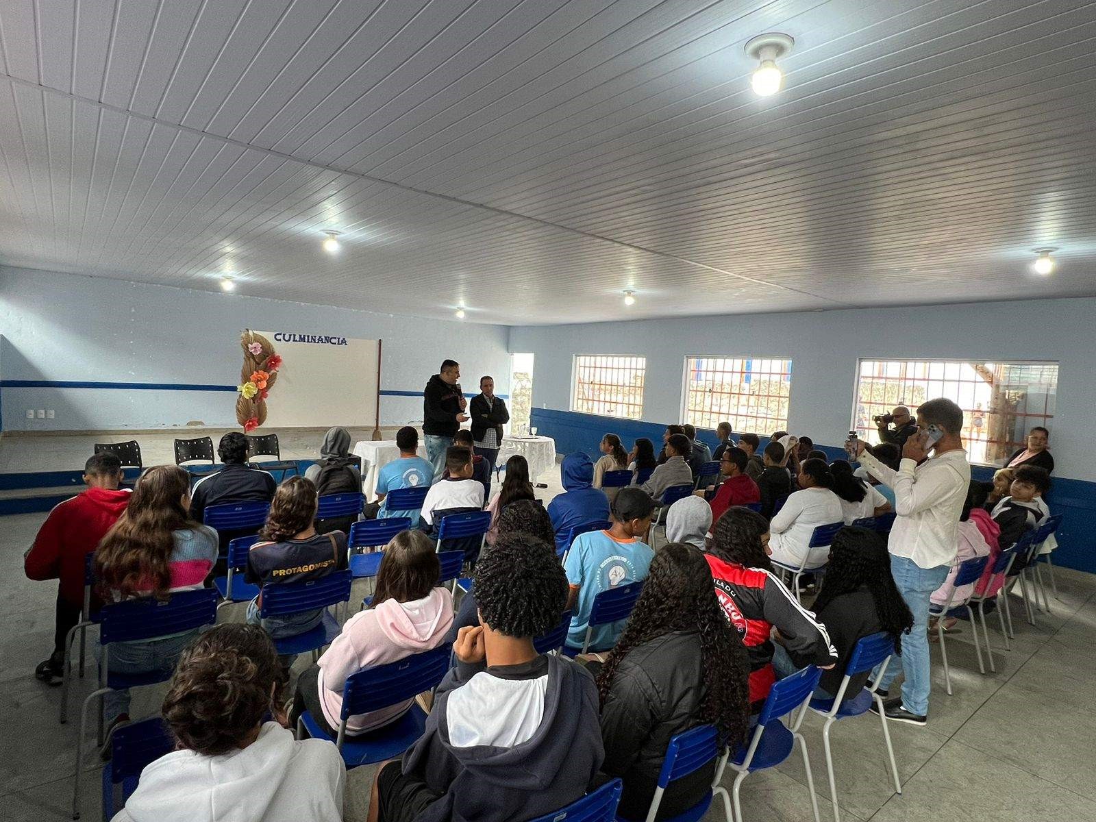 A segunda história foi sobre uma escola próxima à rodoviária de Manhuaçu. Era uma escola bonita, com estrutura metálica, mas todos os vidros estavam quebrados. O interior também precisava de muitos reparos. Conversei com a Secretaria de Educação e, felizmente, conseguimos os recursos necessários para a reforma”.